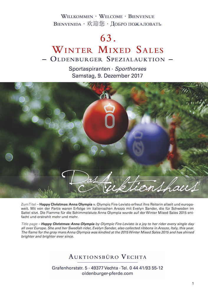 Was für eine Freude...unsere ehemalige und von uns gezüchtete Stute "Anna Olympia" v. Olympic Fire aus die St. Pr. Stute Anna Levista v. Levisto schmückt die Titelseite des Auktionskatalog "Winter Mixed Sales" des Oldenburger Verbandes.