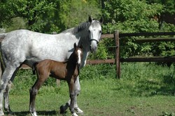 Samen nehmen und wieder losfahren nach Hause. In Kükenmoor angekommen, Stute von der Weide holen, Stute besamen und wieder auf die Weide bringen...so ist das Leben eines Züchters, vom Vatertag war nicht viel zu spüren...