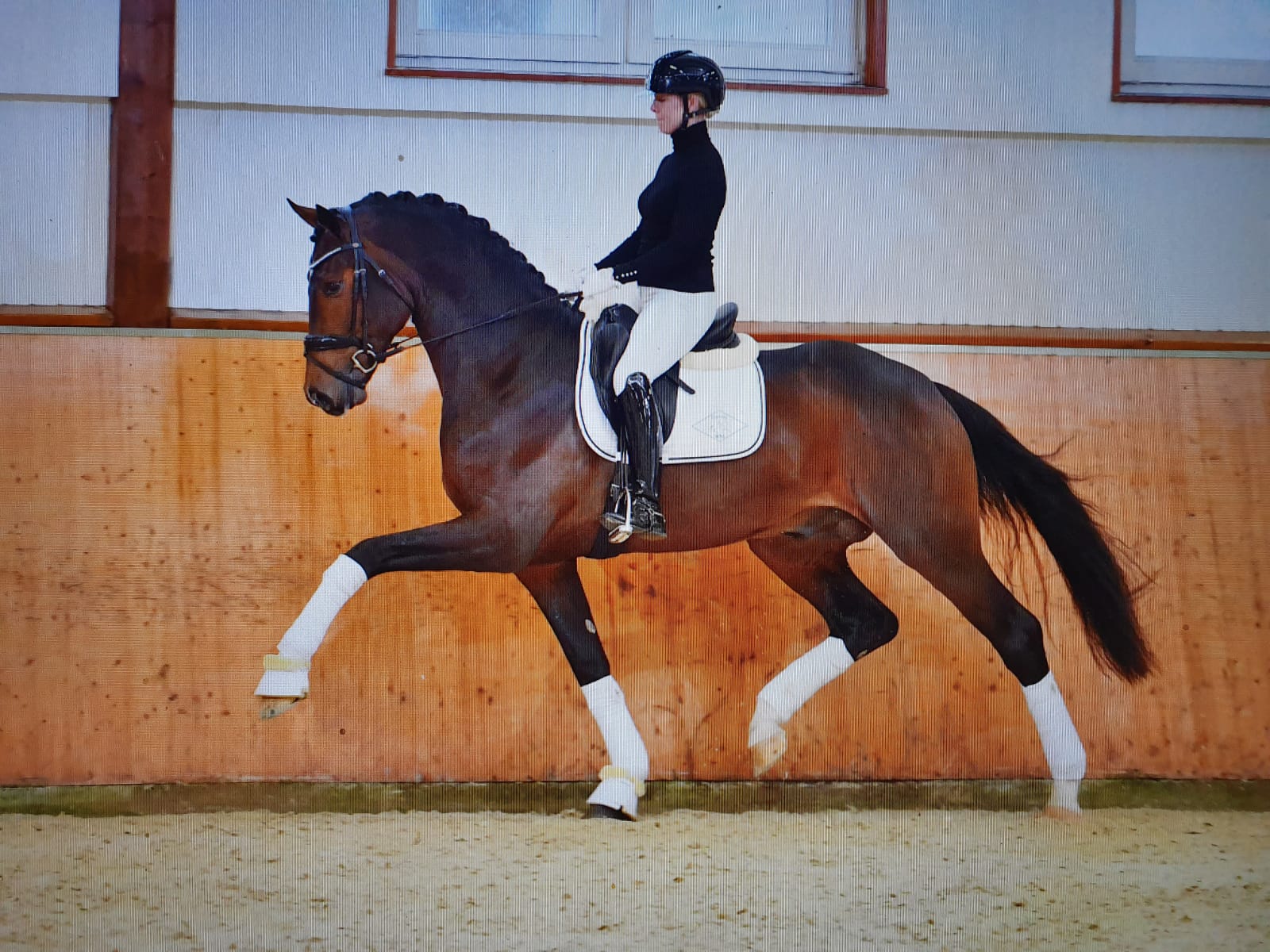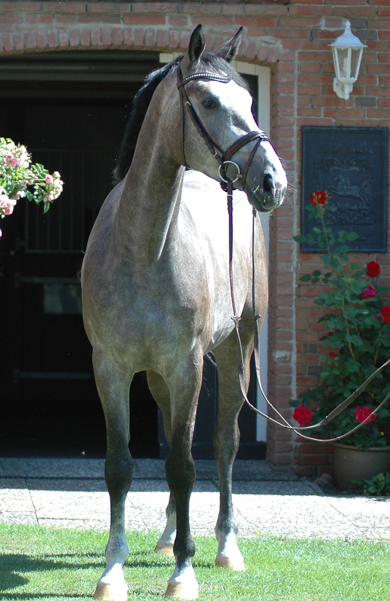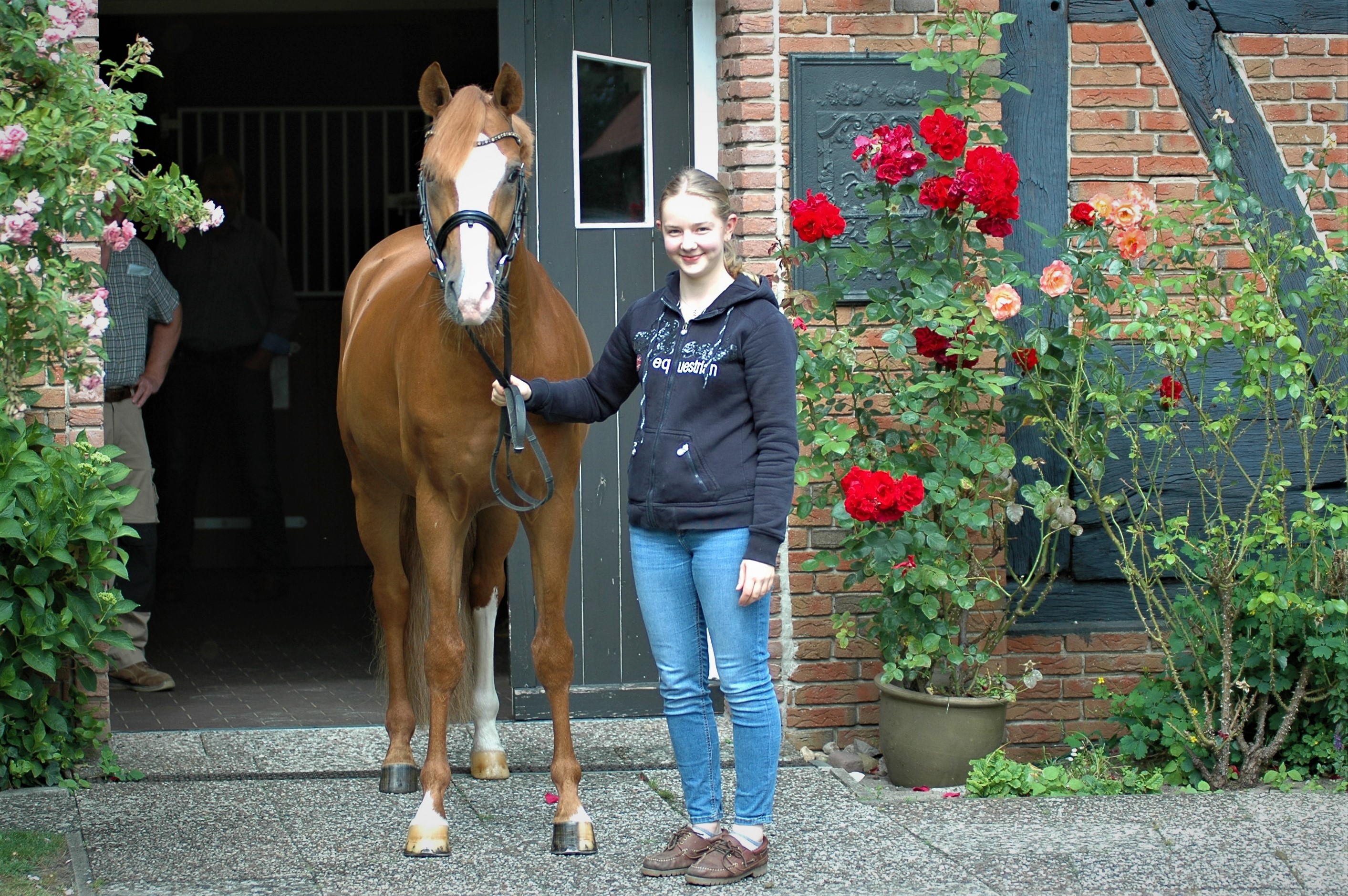 Seine Mutter hatten wir als Fohlen in Münster bei die Elite Fohlenauktion gekauft und Sie war damals das teuerste Stutfohlen bei eine Auktion. Nach drei Erfolgreichen Nachkommen wie die Siegerstute in Verden "Semana von Kükenmoor" und die bis S Dressur erfolgreich in der Niederlande Stute "Sehnsucht von Kükenmoor", haben wir die Mutter des Hengstes an Frau Feichtinger verkauft.